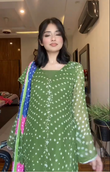 Designer Green Bandhani Print Kurti For Women