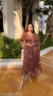 Floral Embroidered Regular Thread Work Straight Kurta with Palazzos & Dupatta